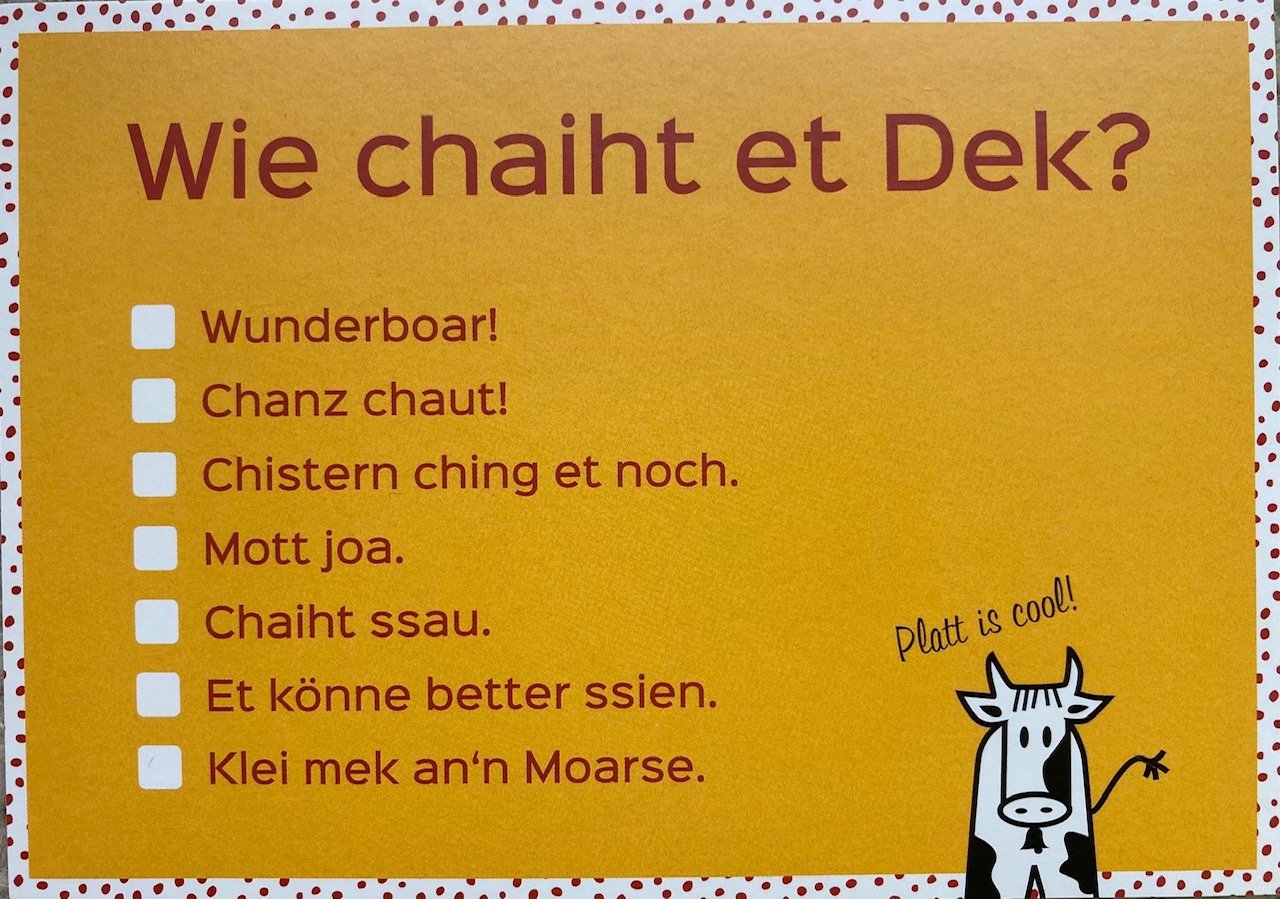 Mooket mee, et kostet nits! Wee köönt ösek upp Platt underhoahl'n ...